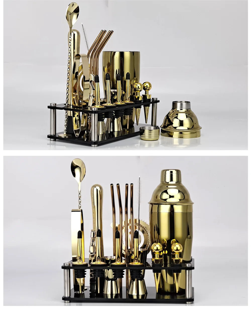 This comprehensive set includes all the essential tools for creating café-quality drinks at home. From the classic Boston shaker to precision jiggers, strainers, and pourers, you'll have professional equipment at your fingertips.